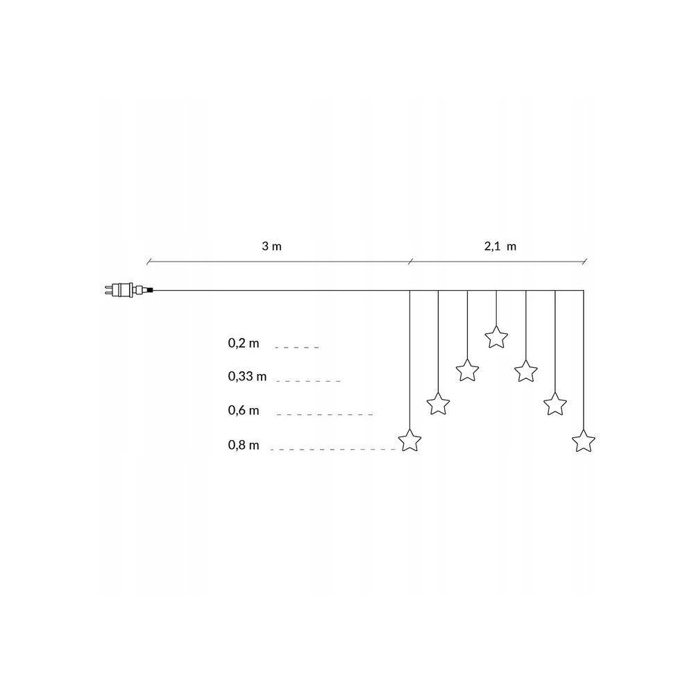 Dotaz na produktLED světelná záclona s nádherným uspořádáním hvězd do pyramidy. Adaptér na bezpečné napětí, ultra úsporné led diody, transparentní kabel. Vnitřní i venkovní použití, voděodolné provedení, krytí IP44. Rozměry světelné části 2x0,8 m, napájecí kabel 3 m. Barva teplá bílá, 70 led.