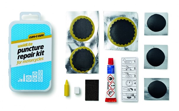 Sada na opravu defektů. Tato vysoce kvalitní sada obsahuje všechny potřebné nástroje pro opravy dušových kol. Souprava obsahuje dvě střední a jednu velkou kulatou záplatu, tři malé kulaté záplaty, 5 g tuba vysoce kvalitního kaučukového lepidla.