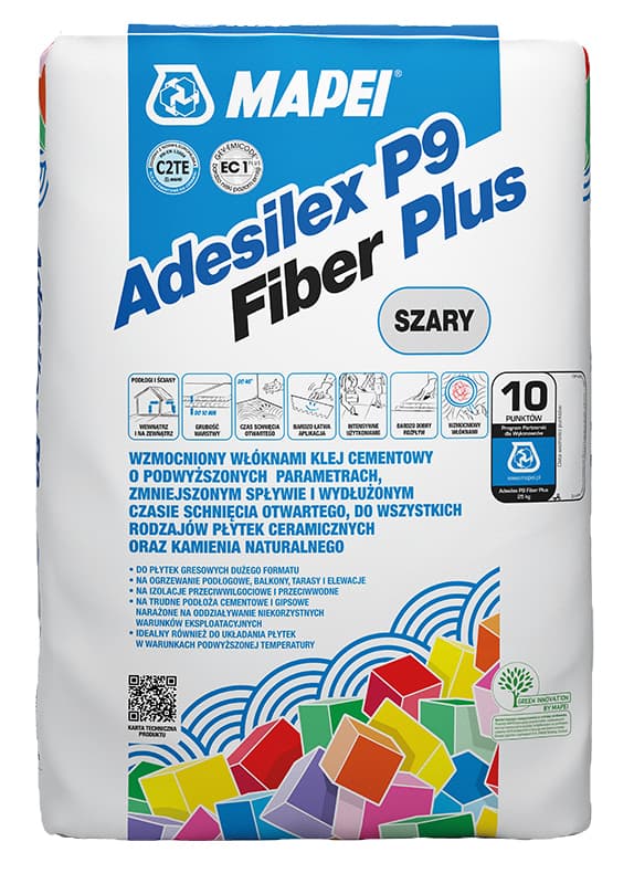 Lepidlo Adesilex P9 Fiber Plus je určeno pro tenkovrstvé a středněvrstvé (do 10 mm) lepení dlažeb a obkladů v interiéru i exteriéru, na vodorovném i svislém povrchu. Adesilex P9 Fiber Plus je vhodný zejména k lepení obkladů malého a středního formátu na problematické cementové a sádrové podklady (zejména tam, kde jsou nízké teploty a nízká relativní vlhkost vzduchu), vystavené nepříznivým povětrnostním vlivům (schodiště, obchodní plochy, podlahové vytápění, balkony, terasy, fasády apod.). Adesilex P9 Fiber Plus je vhodný také k bodovému lepení izolačních materiálů, jako jsou např. polystyrenové desky, minerální nebo skelná vlna, Heraklit®, akustické panely apod.
