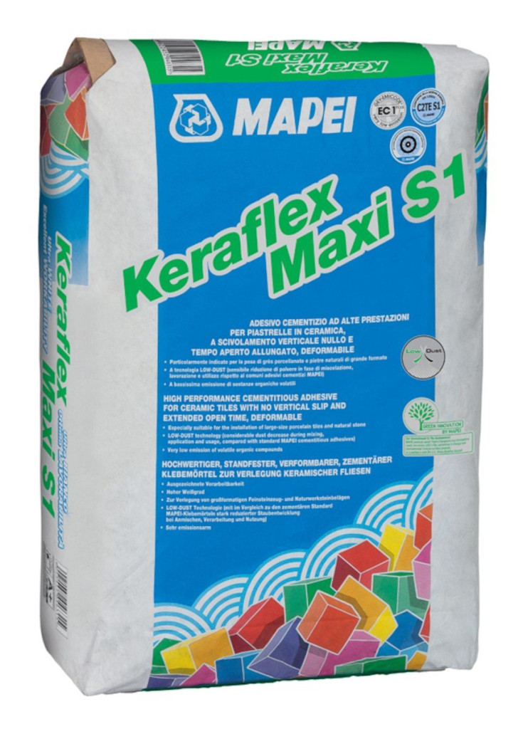 Dotaz na produktCementové lepidlo s velmi dobrými vlastnostmi, deformovatelné (třída S1), se sníženým vertikálním skluzem, prodlouženou dobou zavadnutí a technologií Low Dust (snížená prašnost)