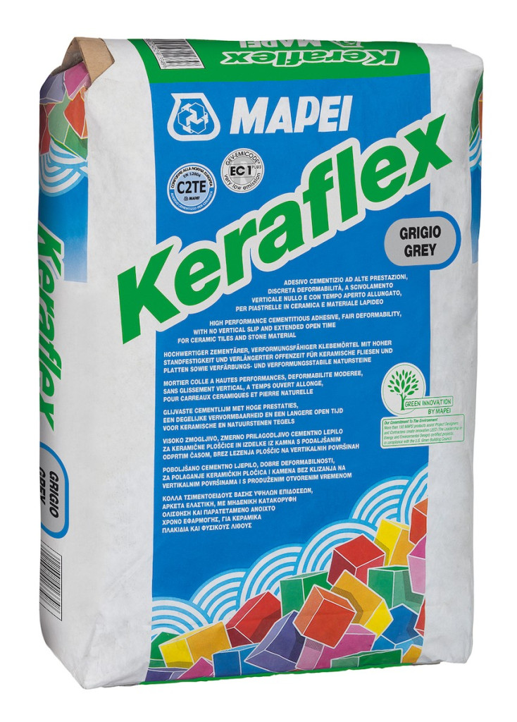 Dotaz na produktCementové lepidlo na obklady a dlažby z keramiky a přírodního kamene s velmi dobrými vlastnostmi, sníženým vertikálním skluzem a prodlouženou dobou zavadnutí.