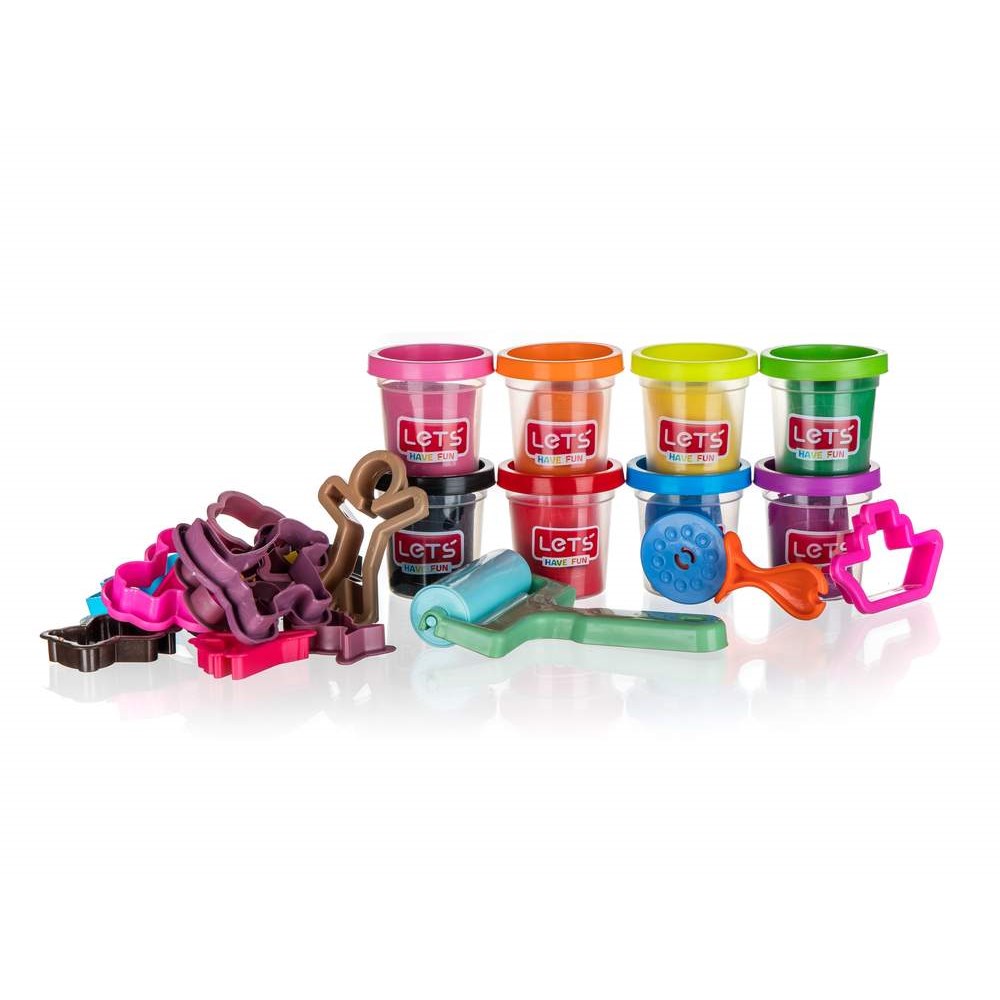 Dotaz na produktSada modelín pro kreativní hraní. Sada obsahuje 8 kelímků s modelínou o hmotnosti 56 g, váleček, plastové krájecí kolečko a 14 ks vykrajovátek. Modelína je v barvách: černá, bílá, žlutá, modrá, oranžová, fialová, růžová a zelená.