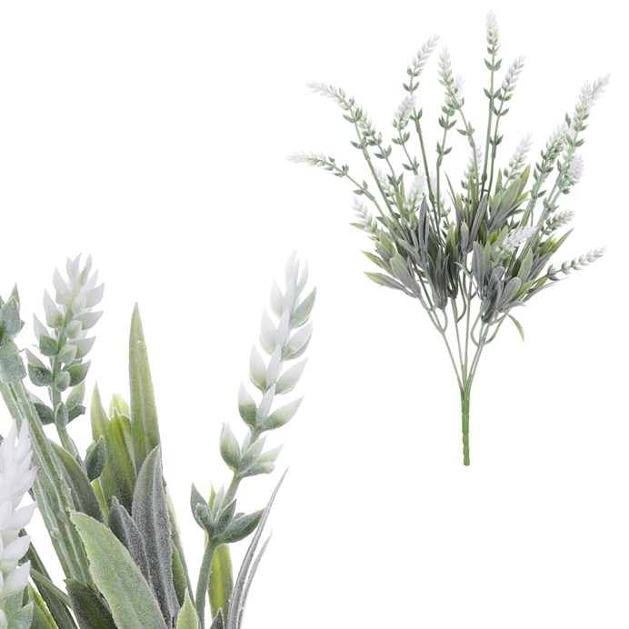 Dotaz na produktLevandule je všestranným darem přírody, který nabízí klid, krásu a smyslové potěšení. Náš trs umělých levandulových lístků s něžnými bílými květy předává všem aranžérům do rukou cenný nástroj pro dekorování věnců, stolních aranží, květinových vazeb a dokonce i pro zdobení truhlíků. Jejich přítomnost dodá vašim kompozicím nádech romantiky a sentiment spojený s příjemnými vzpomínkami na klidné chvíle strávené na venkovské chalupě.