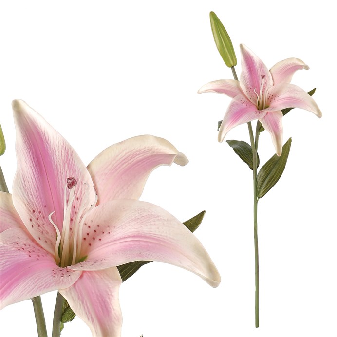 Lilie - umělá řezaná květina, bílo-růžová, sada 6 ks