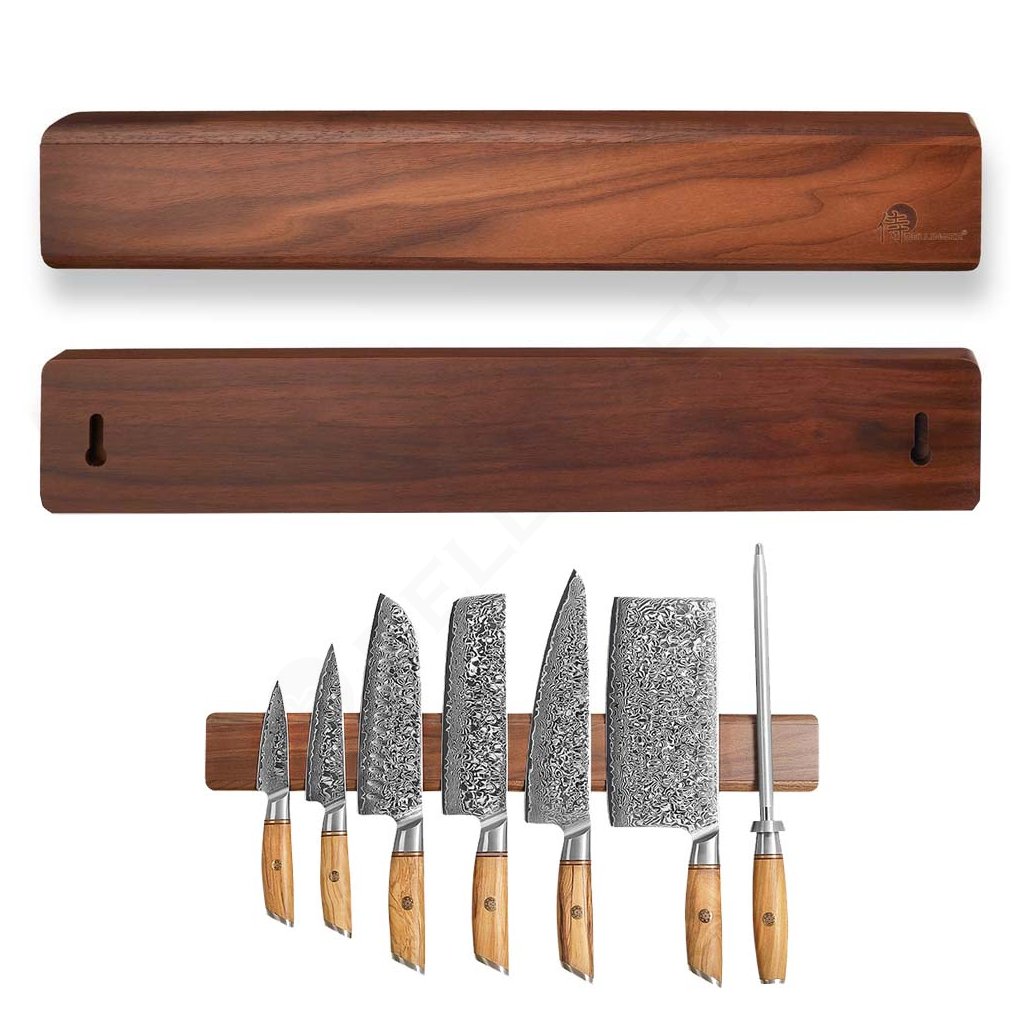 Lišta je ošetřená směsí přírodních olejů a vosků, která zvýrazňuje krásnou kresbu ořechového dřeva a zároveň chrání jeho povrch. Silné magnety uchytí nože bezpečně a rovnoměrně po celé délce, čímž chrání jejich ostří před poškozením. Instalaci si zvolíte podle typu stěny – bez vrtání pomocí 3M pásky nebo klasicky na šrouby.
