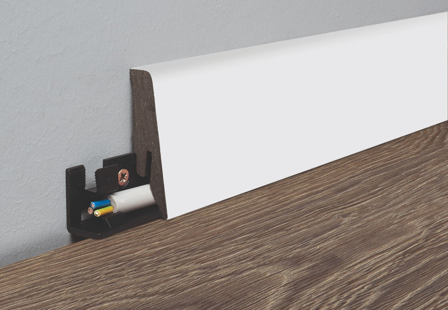Dotaz na produktMDF soklová lišta v bílé barvě v rozměru 18 x 58 mm a v délce 2,6 m je vhodná k voděodolným laminátovým podlahám Naturel Water 100 a k vinylovým podlahám Naturel Better a Best.