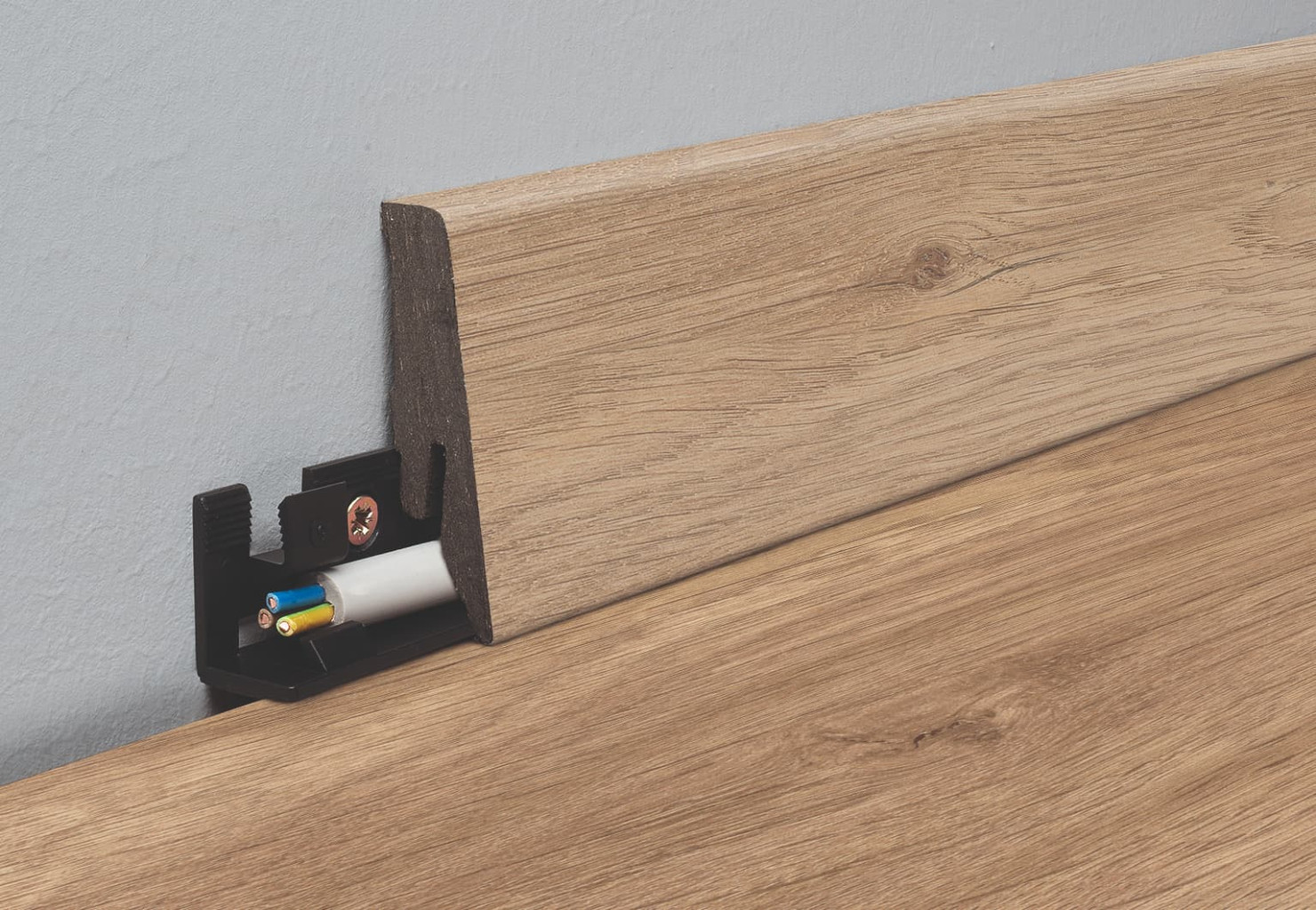 MDF soklová lišta v rozměru 18 x 58 mm a v délce 2,6 m je vhodná k voděodolným laminátovým podlahám Naturel Water 100 a k vinylovým podlahám Naturel Better a Best.