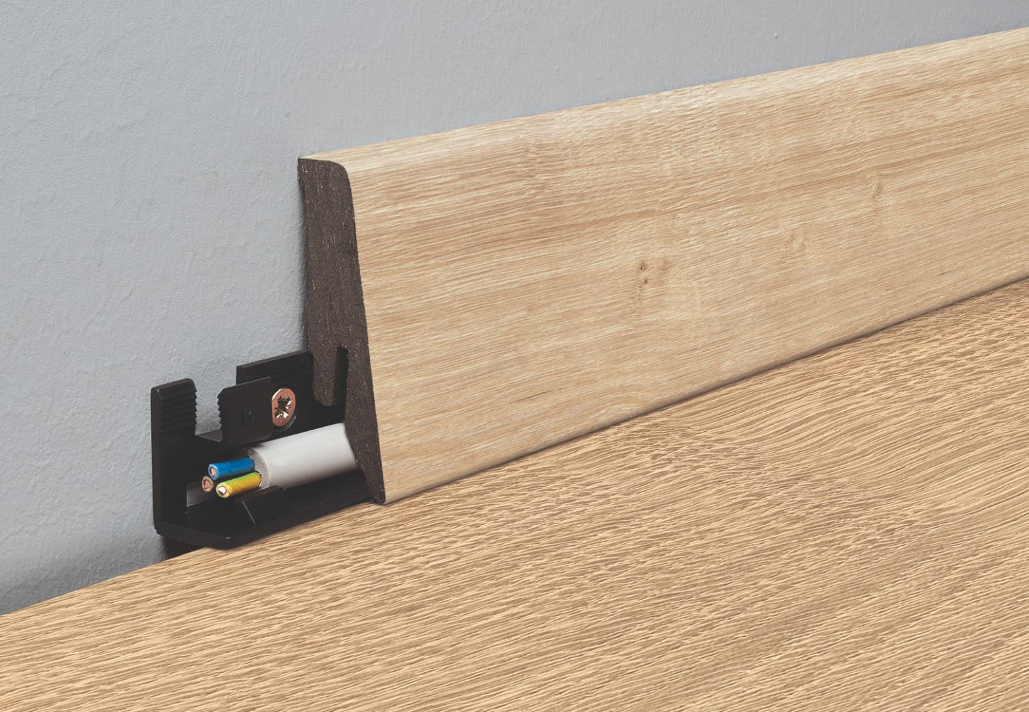MDF soklová lišta v rozměru 18 x 58 mm a v délce 2,6 m je vhodná k voděodolným laminátovým podlahám Naturel Water 100 a k vinylovým podlahám Naturel Better a Best.