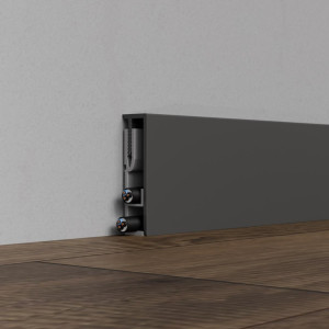 ÚvodPodlahovinyDoplňky pro podlahovinyLišta soklová "rovná" Profil-EU grafit mat, PVC, délka 250 cm, výška hrany 50 mm, SKKOMPGF50