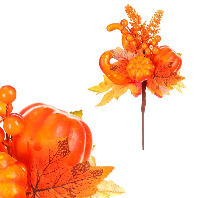 Dotaz na produktUmělá podzimní větvička s oranžovými lístky, doplněná dýněmi a bobulemi v podobných odstínech, je skvělým doplňkem pro výzdobu interiéru. Tato dekorace přináší do vašeho domova pestrobarevnost a široké možnosti využití, díky čemuž ji můžete snadno kombinovat s dalšími přízdobami a květinami. O její trvanlivost nemusíte mít obavy, neboť jako umělá vám neopadá a vydrží prakticky na věky. Těšit se z její krásy můžete bez obav po celou sezónu i mnoho dalších. Její syté barevné odstíny dodají místnosti hřejivý nádech a přinesou do ní atmosféru podzimního tepla a pohodlí.