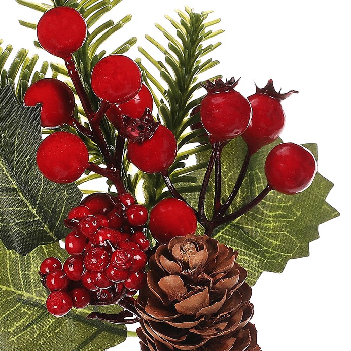 Dotaz na produktTato umělá vánoční větvička věrně napodobující rostlinné prvky v přírodních barvách, je skvělým doplňkem pro váš sváteční interiér. Celkově, s červenými bobulemi, zelenými umělými lístky cesmíny a jehličím, to vše doplněno pravou šiškou, přináší do vašeho domova jedinečnou vánoční atmosféru. Všechny části větvičky vypadají velmi realisticky, jako by byly skutečně ze živých rostlin. Navíc díky trvanlivosti této dekorace nemusíte mít obavy z opadávání nebo uvadání, a tak ji můžete využívat jako trvalou ozdobu každý rok.