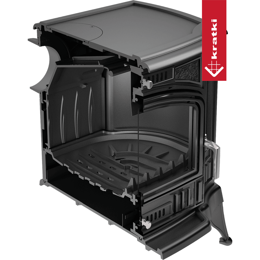 Maximální využití energie Maximální využití tepla a bezporuchový provoz díky stěnám zařízení z vysoce kvalitní litiny s tloušťkou 8 mm. spalování částic paliva díky deflektoru, která se rozkládá na dráhu výfukových plynů. Ruční ovládání spalovacího procesu přes ashpan. ekologickým spalováním Přístroj splňuje požadavky ekodesignu standardy. Bezpečnost na nejvyšší úrovni Klasické přední vložky je vybavena žáruvzdorné keramiky, které mohou odolat teplotám až 660 ° C. Dekorativní plot pomáhá udržovat pořádek a chrání proti vypadnutí ze dřeva. vhodné použít Studená handle systém umožňuje demontáž to, když je varná deska je v provozu. Ash zásuvka / popelník, kde se shromažďují zbytky spáleného dřeva a rošt pro snadné odstranění popela. Snížené ukládání sazí pomocí systému čiré sklo (clony). Možnost odlišné sestavy, a to díky nastavitelnému výstupu spalin ze zadní nebo horní části kamen.