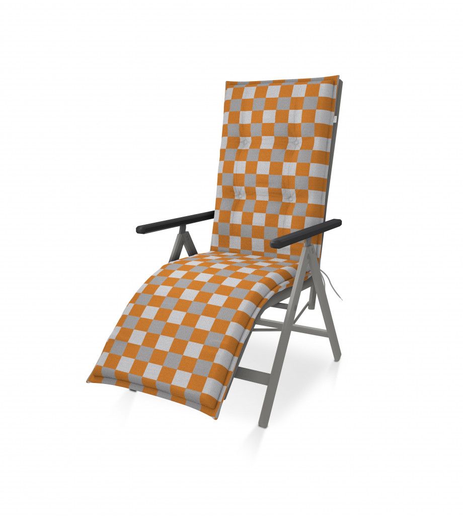 - polstr na relaxační křeslo Polstr na relaxační křeslo řady LIVING je v provedení s obšitým lemem, prošitý kroužkově 4x v opěradle. Uchycení je pomocí posuvné spony. Díky sponě si můžete nastavit velikost dle rozměru a druhu židle, spona je pevná a nevytahuje se. Upevnění sedáku je pomocí dvou tkaniček v ohybu polstru. Síla polstru je optimální pro všechny druhy židlí. Provedení je vhodné i do náročných podmínek kaváren, zahrádek a restaurací. Potah je nesnímatelný. Vyrobeno v České republice. Informace o produktu: rozměry polstru: 170 x 48 x 6 cm (výška x šířka x tloušťka) rozměry sedáku: cca 98 x 48 cm rozměry opěradla: cca 72 x 48 cm Materiál potah: bavlněná směsová tkanina, která je savá a příjemná na pokožku výplň: molitan obalený do polyesterového rouna Celkové rozměry podušek jsou uváděny s tolerancí plus /