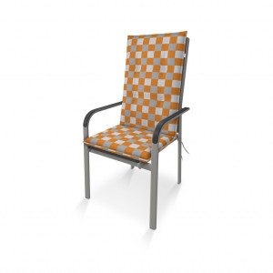 LIVING 4902 vysoký – polstr na křesla a židle Polstr s vysokou opěrkou řady LIVING je v provedení s obšitým lemem, prošitý kroužkově 4x v opěradle. Uchycení je pomocí posuvné spony. Díky sponě si můžete nastavit velikost dle rozměru a druhu židle, spona je pevná a nevytahuje se. Upevnění sedáku je pomocí dvou tkaniček v ohybu polstru. Síla polstru je optimální pro všechny druhy židlí. Provedení je vhodné i do náročných podmínek kaváren, zahrádek a restaurací. Potah je nesnímatelný. Vyrobeno v České republice. Informace o produktu rozměry polstru: 119 x 48 x 6 cm (výška x šířka x tloušťka) rozměry sedáku: cca 48 x 48 cm rozměry opěradla: cca 71 x 48 cm Materiál potah: bavlněná směsová tkanina, která je savá a příjemná na pokožku. výplň: molitan obalený do polyesterového rouna. Celkové rozměry podušek jsou uváděny s tolerancí plus /