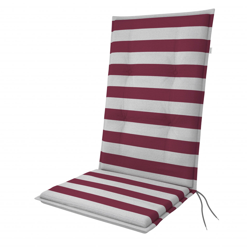 LIVING 4911 vysoký – polstr na křesla a židle Polstr s vysokou opěrkou řady LIVING je v provedení s obšitým lemem, prošitý kroužkově 4x v opěradle. Uchycení je pomocí posuvné spony. Díky sponě si můžete nastavit velikost dle rozměru a druhu židle, spona je pevná a nevytahuje se. Upevnění sedáku je pomocí dvou tkaniček v ohybu polstru. Síla polstru je optimální pro všechny druhy židlí. Provedení je vhodné i do náročných podmínek kaváren, zahrádek a restaurací. Potah je nesnímatelný. Vyrobeno v České republice. Informace o produktu rozměry polstru: 119 x 48 x 6 cm (výška x šířka x tloušťka) rozměry sedáku: cca 48 x 48 cm rozměry opěradla: cca 71 x 48 cm Materiál potah: bavlněná směsová tkanina, která je savá a příjemná na pokožku. výplň: molitan obalený do polyesterového rouna. Celkové rozměry podušek jsou uváděny s tolerancí plus /