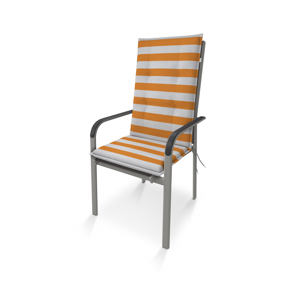 LIVING 4912 vysoký – polstr na křesla a židle Polstr s vysokou opěrkou řady LIVING je v provedení s obšitým lemem, prošitý kroužkově 4x v opěradle. Uchycení je pomocí posuvné spony. Díky sponě si můžete nastavit velikost dle rozměru a druhu židle, spona je pevná a nevytahuje se. Upevnění sedáku je pomocí dvou tkaniček v ohybu polstru. Síla polstru je optimální pro všechny druhy židlí. Provedení je vhodné i do náročných podmínek kaváren, zahrádek a restaurací. Potah je nesnímatelný. Vyrobeno v České republice. Informace o produktu rozměry polstru: 119 x 48 x 6 cm (výška x šířka x tloušťka) rozměry sedáku: cca 48 x 48 cm rozměry opěradla: cca 71 x 48 cm Materiál potah: bavlněná směsová tkanina, která je savá a příjemná na pokožku. výplň: molitan obalený do polyesterového rouna. Celkové rozměry podušek jsou uváděny s tolerancí plus /