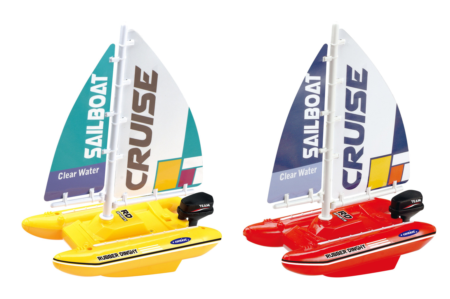 Dotaz na produktLoď katamarán. Rozměry 19x9,5x25 cm. 2xAA baterie nejsou součástí. Přepínač ON/OFF v zadní části lodi před motorem. 2 barevné varianty - žlutá, červená.