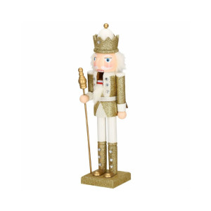 Dřevěná dekorace krále s žezlem. Výška 38 cm, stojící pozice, stabilní základna, detailní ruční malba se zirkony, pohyblivá ústa. Překrásná vánoční dekorace, která se stane ozdobou každého interiéru.