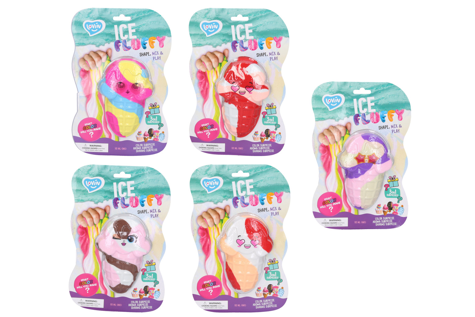 Dotaz na produktLovin Sliz nadýchaný kornout Ice Fluffy Horn 110 ml. Balení obsahuje mix 3 barev. Diagram míchání barev na zadní straně obalu. Několik barevných variant.