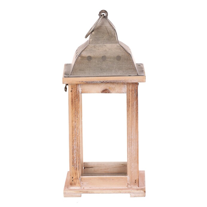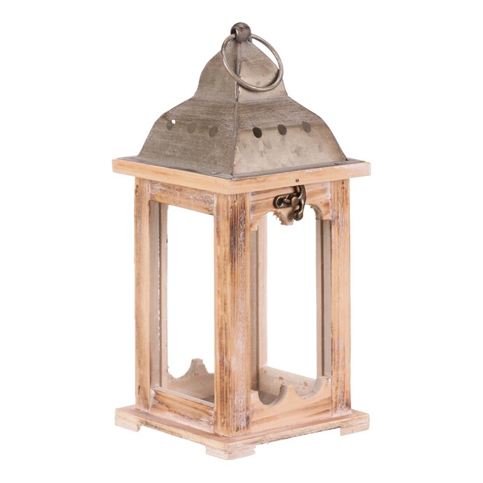 Dotaz na produktČtyřboká lucerna s dřevěnými rámy v přírodní barvě a kovovou stříškou s kroužkem na pověšení je nádherným doplňkem pro zpříjemnění večerů. Po vložení svíčky vytvoříte neodolatelný světelný efekt, který zútulní interiér i venkovní prostory. Lucerna je ideální dekorací pro vytvoření romantického osvětlení pro slavnostní i všední chvilky.