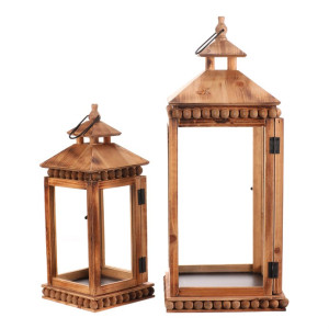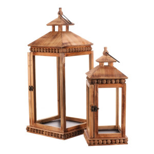 Dotaz na produkt Na splátky ještě dnesDodejte svému interiéru nádech venkovského kouzla s touto dřevěnou lucernou v přírodní hnědé barvě. Čtyřboký design s velkými čirými skly nechá vyniknout světlu svíčky, ať už lucernu pověsíte, nebo postavíte na stůl či polici. Sada dvou různých velikostí nabízí variabilitu a skvěle se hodí k vytvoření harmonického světelného aranžmá, které zútulní každý kout domova.