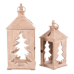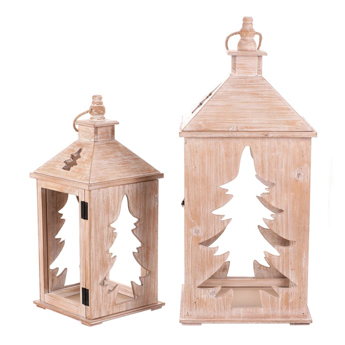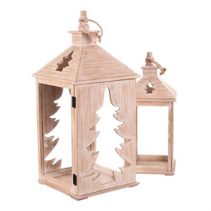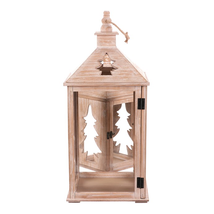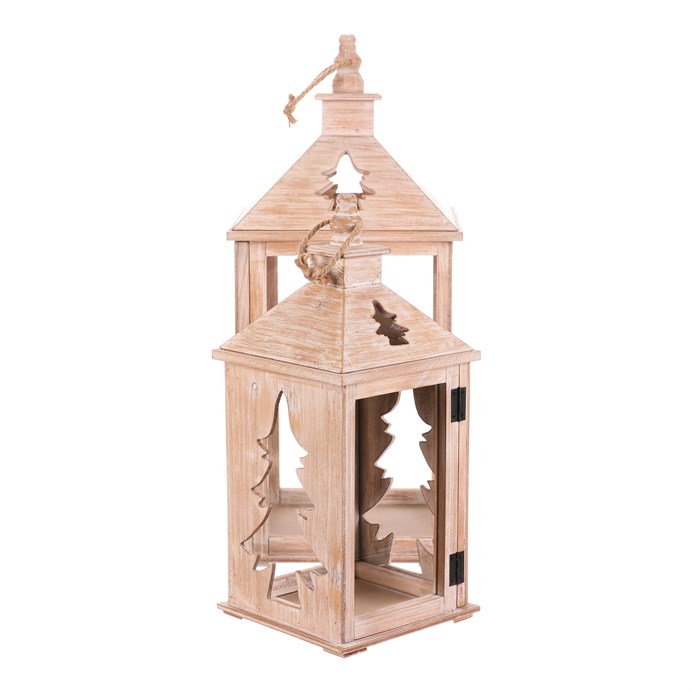 Dotaz na produkt Na splátky ještě dnesDřevěná čtyřboká lucerna s jemně vyběleným povrchem je dokonalým doplňkem pro období Vánoc a zimy. Dvě strany zdobí vyřezaný motiv jehličnanu, který po vložení svíčky vytváří působivý světelný efekt. Lucerna je vybavena kroužkem na pověšení a je k dispozici v sadě dvou velikostí. Ideální pro zpříjemnění dlouhých zimních večerů.