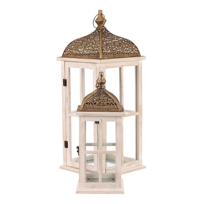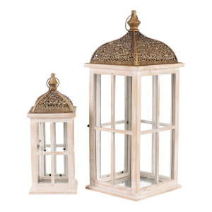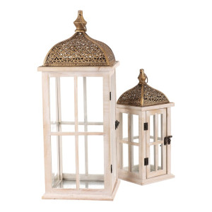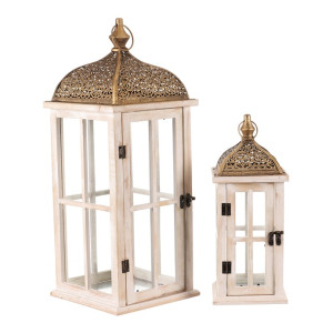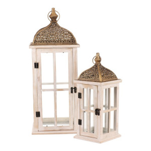 Dotaz na produkt Na splátky ještě dnesDřevěná lucerna v mixu 2 velikostí s velkými prosklenými okny a zlatou kovovou stříškou v orientálním stylu, bude současně nádhernou ozdobou a výborným zdrojem světla. Je čtyřboká, a ze všech stran najdete čirá skla zasazená do elegantních dřevěných rámů, kterými po zapálení knotu svíčky, bude neodolatelně pronikat světlo ven. Přírodní barva dřeva v kombinaci s čirými skly působí vzdušně a elegantně. Zlatá stříška působí až vznešeně a dodává lucerně na jedinečnosti. Svým provedením je uzpůsobena na zavěšení pomocí očka na kovové stříšce, ale taktéž ji můžete postavit na stůl, okenní parapet, či jiné vhodné místo.