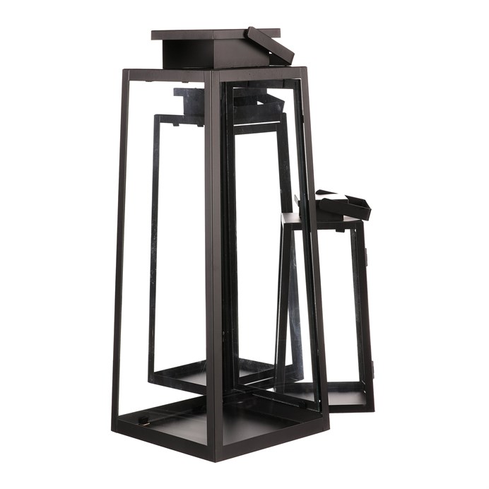 Dotaz na produkt Na splátky ještě dnesNavoďte si atmosféru plné romantiky a pohody s naší sadou kovových čtyřbokých luceren v černých barvách. Sestává se ze tří různých velikostí, každá s velkým čirým sklem ze všech stran, které umožňuje, aby se světlo svíčky rozprostíralo po celém okolí. Dvířka na jedné straně umožňují snadný přístup k vložení svíčky. Každá lucerna je shora vybavena kovovým madlem, který umožňuje její bezpečné zavěšení. Lze ji i postavit, a to na libovolné místo, jako jsou terasy, altánky, pergoly a další viditelné pozice. Už jen vyčkat, až přijde soumrak, a můžete si vychutnat nádherný světelný efekt, který vytvoří plápolající plamínek svíčky uvnitř.