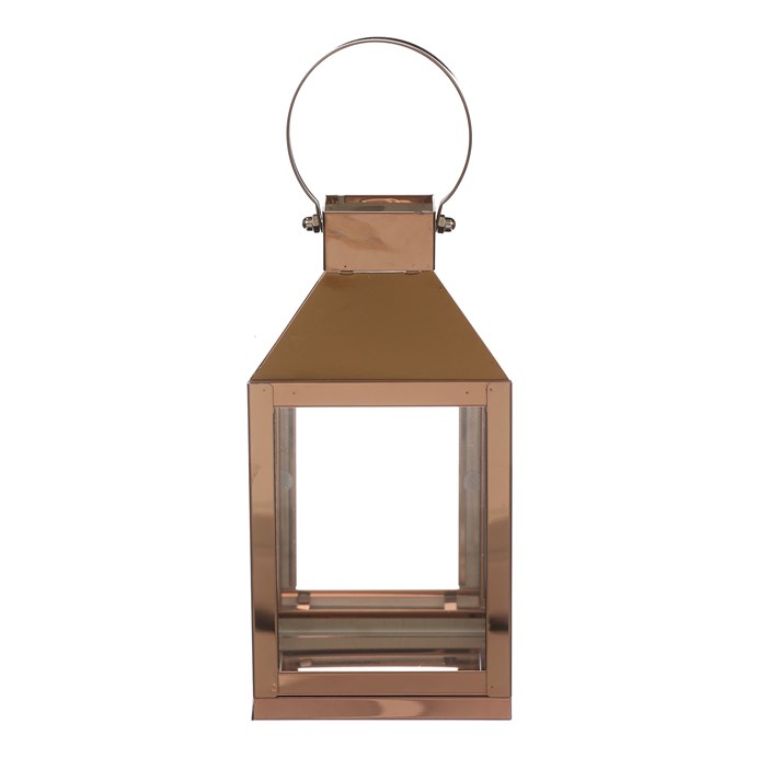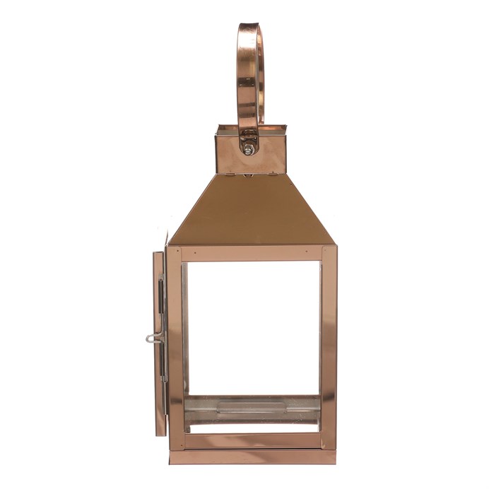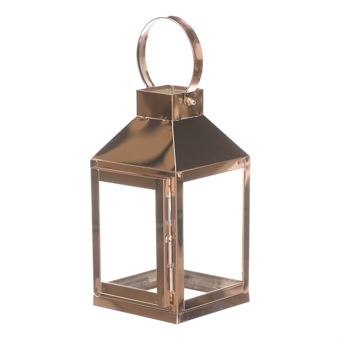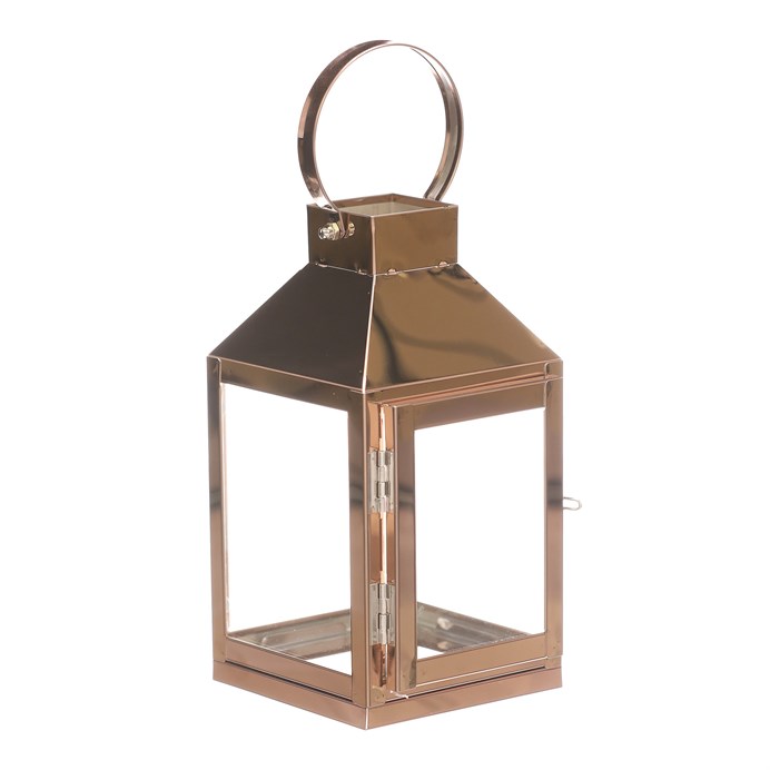 Dotaz na produktMalá čtyřboká lucerna si kovovými rámy v měděné barvě, bude skvělým ozdobným, ale především světelným prvkem vašeho prostoru. Lze ji postavit na stůl, okenní parapet, případně jiné vyvýšené místo. Díky kovovému oku v horní části, nad stříškou, ji lze i pověsit a získat tím nádherný zdroj přirozeného světla z vložené svíčky. Všechny 4 boky jsou vyplněné čirým sklem, skrze které budou neodolatelně pronikat paprsky světla všemi směry.