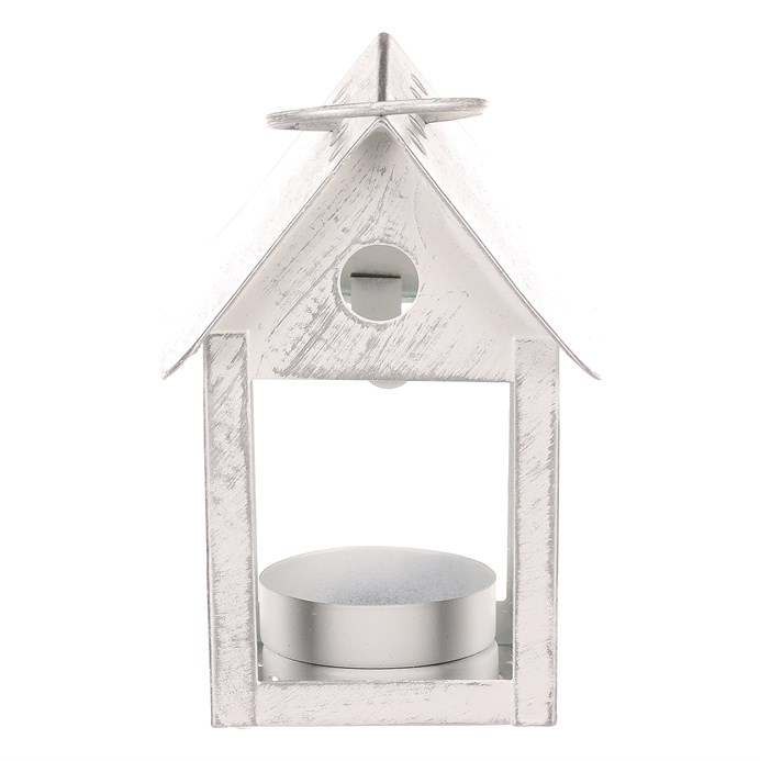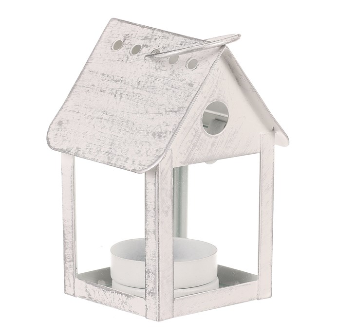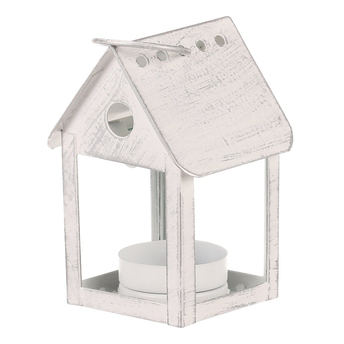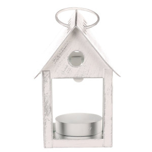 Dotaz na produktTato malá kovová lucerna v bílé barvě se díky svým malým rozměrům hodí i do míst s omezeným prostorem. Vypadá jako malá ptačí budka a uvnitř je místo tak akorát na čajovou svíčku. Ke stříšce je připevněno kovové kolečko, za které je možné lucerničku pověsit. Lze ji taktéž jednoduše postavit třeba na okenní parapet, stůl, římsu a další viditelné místa.
