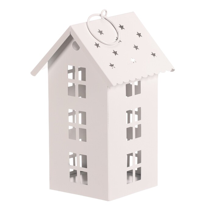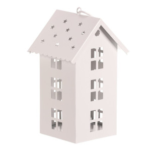 Dotaz na produktMini kovová lucerna ve tvaru patrového domku je půvabnou dekorací pro váš interiér. Bílá barva jí dodává jemný vzhled, zatímco detailně zpracovaná okénka a hvězdičkové otvory ve stříšce krásně propouštějí světlo LED svíčky. Můžete ji postavit na stůl nebo zavěsit za očko a vytvořit si tak kouzelnou atmosféru.