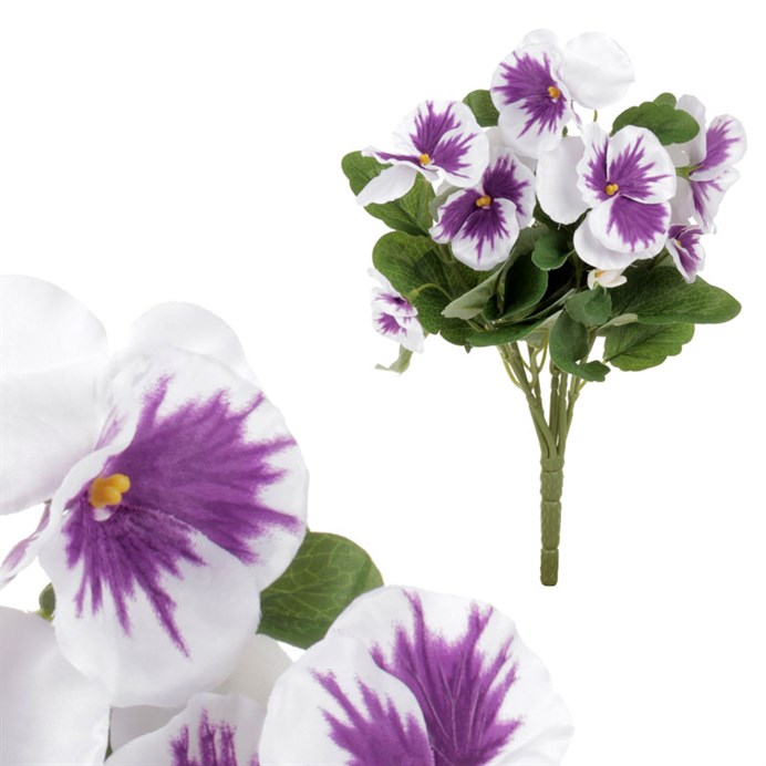 Dotaz na produktPředstavte si trvalou krásu květin, které vydrží v plném květu a nepotřebují žádnou péči. Naše dekorační umělé kytice z fialovo bílých macešek jsou dokonalou volbou pro ty, kteří si přejí mít, čit darovat svěžest a eleganci prostřednictvím květin, které nikdy neuvadnou. Vzhled kytice je díky svému provedení a důrazem na detaily s použitím kombinace plastu a textilu velmi realistický. Můžete si naplno a trvale vychutnávat krásu květin v jakémkoli ročním období. Díky širokému sortimentu různých dalších druhů umělé květeny v našem portfoliu se nabízí spousta možností, jak je kombinovat podle události, či vkusu a dekorativního stylu. S našimi umělými kyticemi získáte vy, či obdarovaný, trvalou květinovou výzdobu, která s sebou přináší nekončící radost a potěšení.