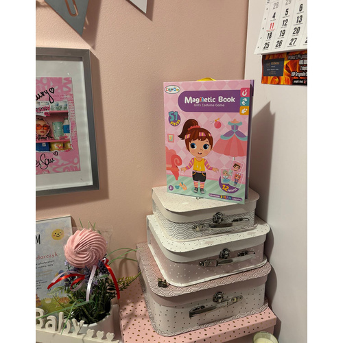 co obnáší zařizování? - dítě si vybere magnetické oblečení a doplňky a poté je přiřadí k postavičkám na desce, Hra vám umožňuje experimentovat s různými výtvory, rozvíjet kreativitu a manuální dovednosti