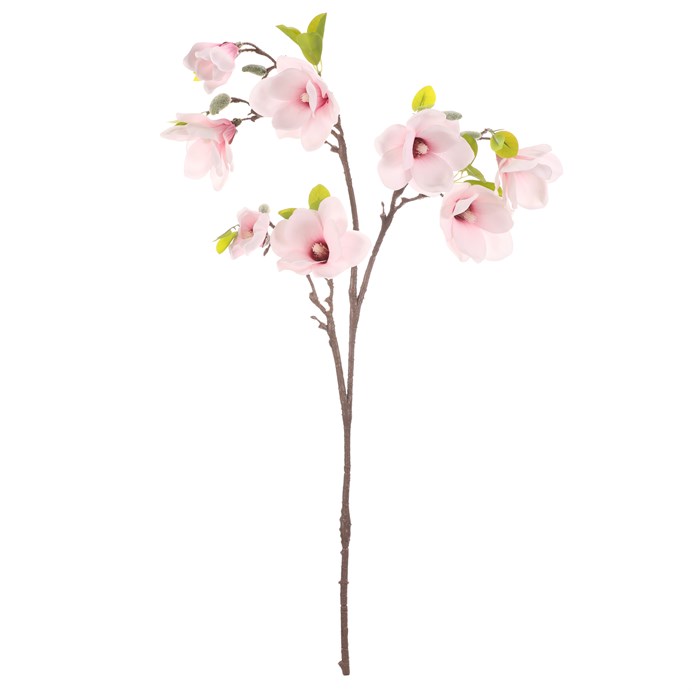 Dotaz na produkt Na splátky ještě dnesUmělá kvetoucí větev magnolie v jemně světle růžovém odstínu přináší do interiéru nádech jarní svěžesti a něžnosti. Květiny jsou vyrobeny z textilu, který věrně napodobuje přirozenou strukturu okvětních lístků, a doplněny jsou zelenými listy pro autentický vzhled. Větev je vhodná pro aranžmá ve váze nebo jako dekorativní prvek v květinových kompozicích, kde dodá prostorům jemný barevný akcent. Díky umělému provedení nevyžaduje údržbu a zachovává si stálost barev i tvaru po dlouhou dobu.