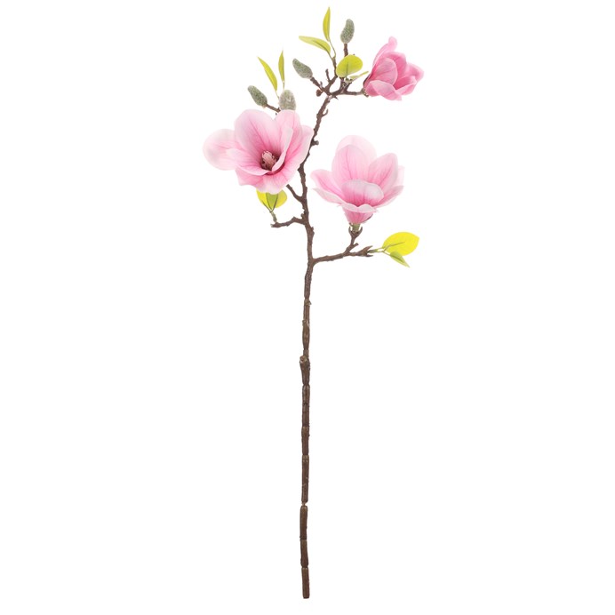 Dotaz na produktUmělá kvetoucí větev magnolie v tmavě růžovém odstínu přináší do interiéru jemný a přirozený vizuální efekt. Květiny jsou vyrobeny z textilu, který věrně napodobuje strukturu a barevnost skutečných okvětních lístků. Větev je doplněna několika zelenými listy, které podtrhují celkový vzhled a dodávají dekoraci živost. Díky svému provedení je vhodná pro aranžmá v květinových vazbách, váze nebo jako samostatný dekorativní prvek. Je ideální pro dlouhodobé použití bez nutnosti údržby.