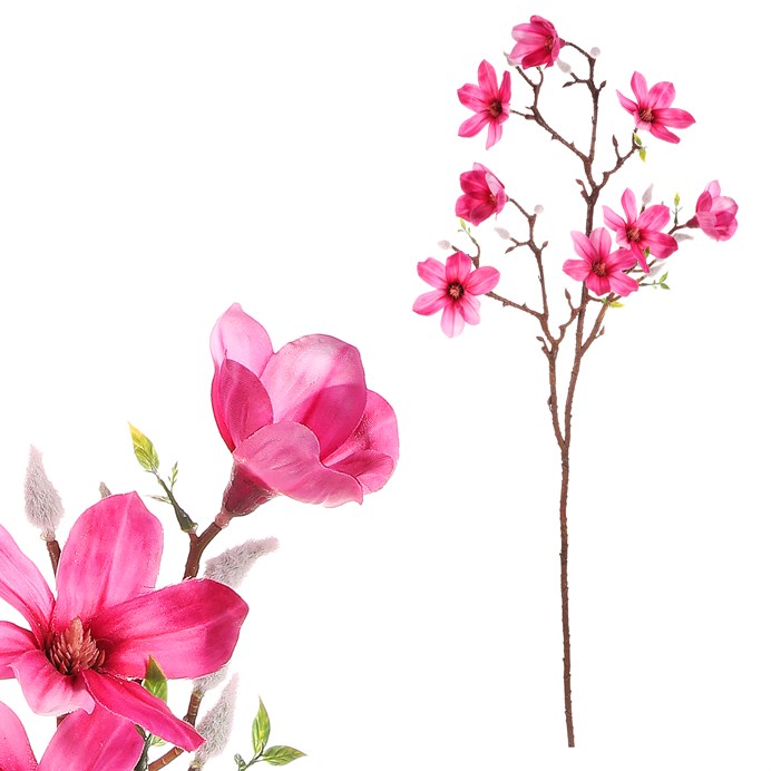 Dotaz na produktMagnolie jako umělá řezaná květina s nádhernými růžovými květy, je dekorace věrně napodobující skutečnou rostlinu. Její realistický vzhled a dlouhá trvanlivost znamenají, že si tuto krásu můžete užívat dlouhá léta bez obav, že by vám uvadala. Ideální pro elegantní a trvalou dekoraci v jakémkoli prostoru.