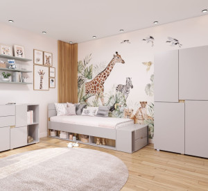 Díky široké nabídce prvků – komody, policová a šatní skříň, psací stůl, jednolůžková postel a noční stolek – si můžete vytvořit dokonalou sestavu do dětského nebo studentského pokoje podle vlastních představ.