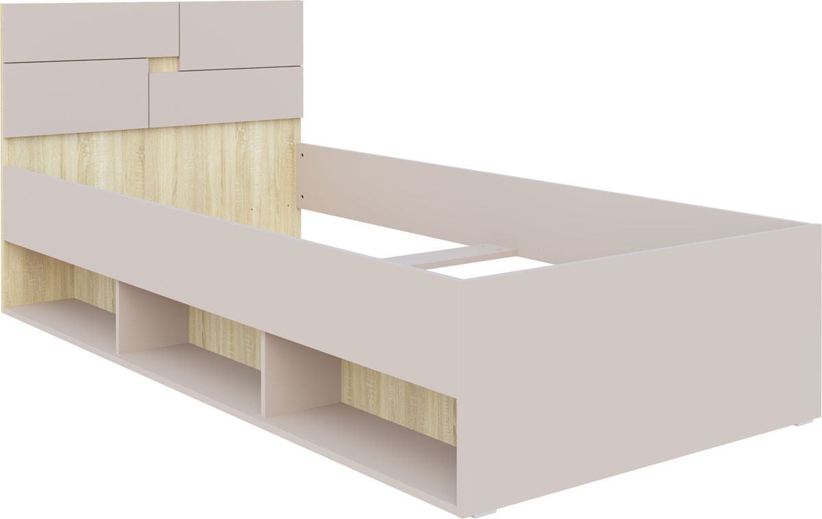Jednolůžková postel je ideálním doplňkem do dětského nebo studentského pokoje. Obsahuje praktický otevřený regál na hračky či knihy. Postel je vyrobena z kvalitní LTD desky o tloušťce 16 mm a zaujme moderním provedením kašmír s detaily v dekoru dub Sonoma.