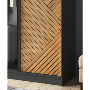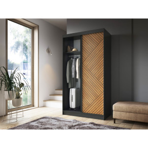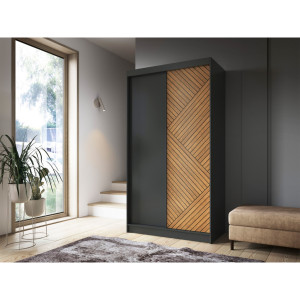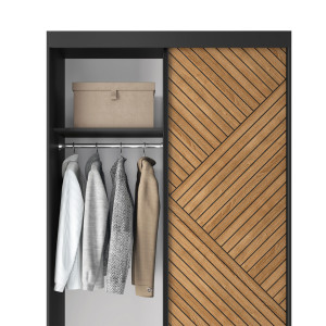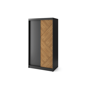 Dotaz na produkt Na splátky ještě dnesPosuvná šatní skříň Marrphy je praktické a stylové úložné řešení, které dokonale kombinuje funkčnost s estetikou. S rozměry hloubky 60 cm, šířky 120 cm a výšky 220 cm umožňuje efektivní využití prostoru bez nadměrného zaplnění. Barevná paleta v odstínech karamelového dubu a černé dodává šatní skříni moderní a elegantní vzhled, který se bez problémů hodí do různých typů interiérů. Skříň je vyrobena z odolné MDF o tloušťce 16 mm, takže je nejen esteticky příjemná, ale také pevná a odolná. ABS hrana dodává nejen odolnost, ale také přispívá k estetice a vytváří ucelený a uklizený vzhled. Maximální nosnost polic 10 kg zajišťuje bezpečné uložení různých předmětů na šesti policích. Tyče, které jsou součástí sady, navíc umožňují zavěšení oblečení, což pomáhá udržovat pořádek a organizovat šatní skříň. Plastové nohy o výšce 0,5 cm poskytují stabilitu a rovnoměrnou oporu na různých typech podlah. Bezzrcadlová posuvná šatní skříň Marrphy není jen praktickým úložným prvkem, ale také designovým doplňkem, který dodá vašemu interiéru charakter a styl. Díky vyvážené kombinaci odolnosti, funkčnosti a estetiky se tato šatní skříň stává nepostradatelným prvkem vašeho prostoru.Látky: Dąb Caramel, Czarny Mat