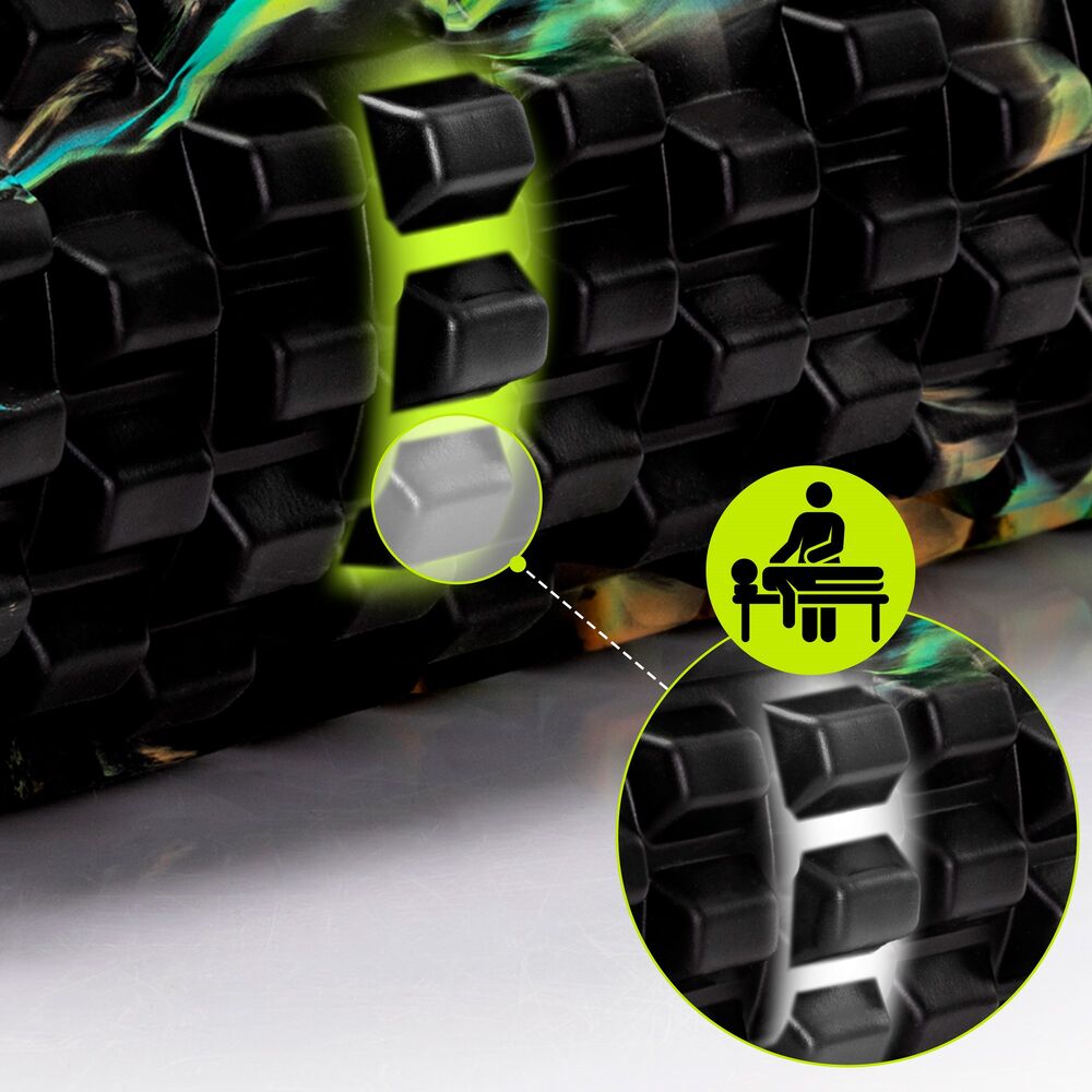 Masážní válec na záda i na nohy. Hluboká svalová masáž díky 3D povrchu. Střední tvrdost vhodná pro efektivní automasáž a regeneraci svalů. Pomáhá snižovat svalové napětí a zlepšuje mobilitu. Rozměry 33x13,5 cm, tloušťka pěny 2 cm, střední tvrdost 50° Shore A.