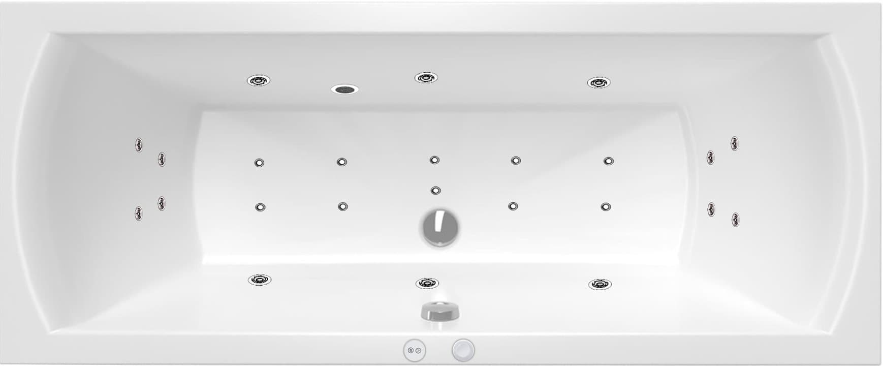 U masážního systému Medium si pomocí ovládání můžete vybrat masáž vodní nebo vzduchovou, případně jejich kombinaci a pomocí regulátoru vzduchu měnit intenzitu vodní masáže. Masážní systém obsahuje 1 mm ploché trysky FLAT, které jsou velmi komfortní při relaxaci ve vaně. Systém obsahuje senzor hladiny vody, který hlídá hladinu vody ve vaně, po vypuštění vody z vany tak dojde s automatickému vysoušení vzduchových rozvodů ve dně vany, voda se vyfouká airmasážními tryskami do vany a odteče odpadem. Zároveň pokud vana není napuštěná vodou, nedovolí sepnout vodní masáž, tím je ochráněno čerpadlo, protože při chodu naprázdno by mohlo dojít k poškození (čerpadlo je chlazeno vodou). Na záda a nohy, se montují mikrotrysky, které mají menší průměr, po bocích jsou miditrysky o větším průměru a jejich střed se dá natočit, do dna bude umístěno 10 flat vduchových trysek.