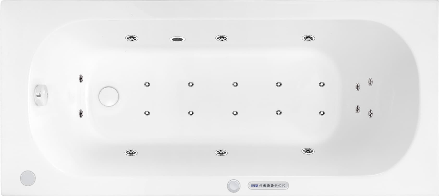 Speciálně vyvinuté masážní systém do vany, které splňují všechny požadavky vč. barevného světla a desinfekce masážního systému.