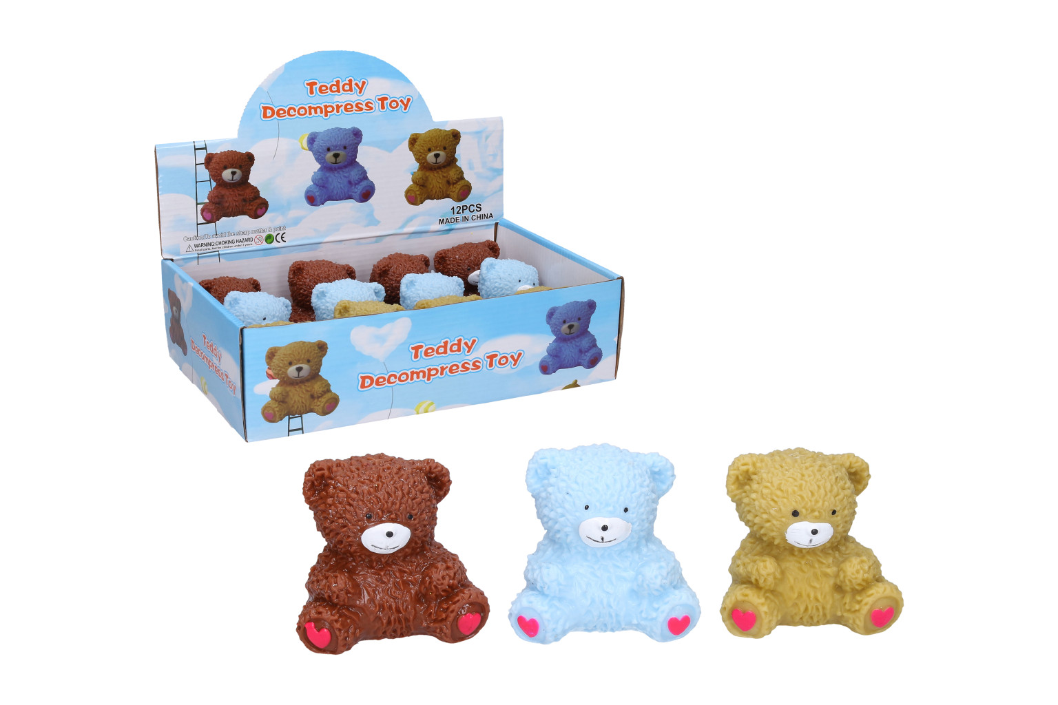 Dotaz na produktMedvěd mačkací. Velikost 8 cm. Display box 12ks. 3 varianty - hnědá, modrá, žlutá.