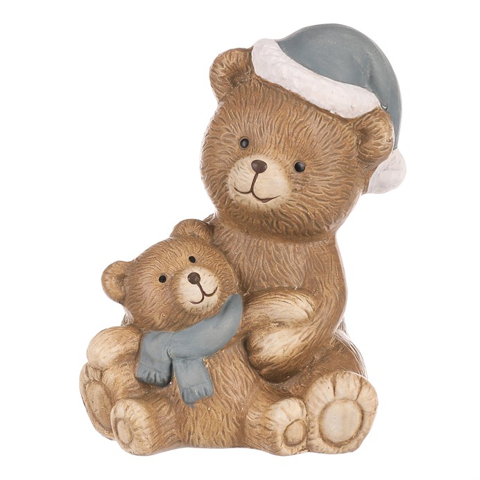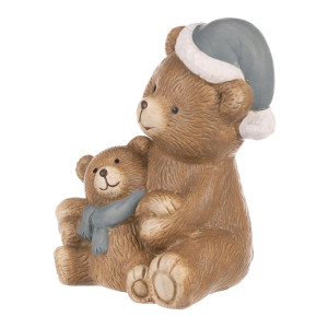Dotaz na produktPředstavte si tuto kouzelnou scénu, jako figurku v keramické podobě s medvědicí a medvídětem. Oba sedí a zdá se, že se chystají na procházku z brlohu. Medvědice je okázale oblečená do elegantní šedé čepice, zatímco její malý potomek si hraje s šálou stejné barvy kolem krku. Tato roztomilá keramická figurka přináší do vašeho domova pohodu a pohádkový dotek. Ideální dekorace pro váš vánočně ozdobený prostor, která vykresluje radostné chvíle strávené s rodinou.