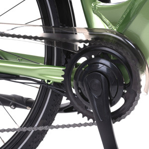 Elektrokolo Levit Musca Urban HD 630 nabízí širokou škálu praktických doplňků. Na nastavitelných řídítkách najdete zvonek a uzamykatelné gripy, které zabraňují prokluzování. Kromě toho je elektrokolo vybaveno průhledným krytem řetězu nebo důmyslnou odnímatelnou ochranou pod řetěz z neoprenového materiálu. Před blátem Vás ochrání i gumové prodloužení blatníků.