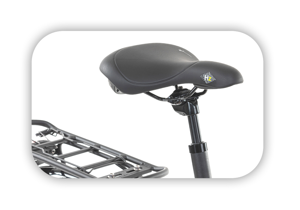 Pohodlné sedlo má ICS klip, díky kterému lze připnout brašnu a také madlo pro snadné chycení. Gumové popruhy, které jsou součástí elektrokola, Vám spolehlivě zajistí náklad. Jejich rychlé a rafinované upevnění oceníte především, když Vás právě bude tlačit čas. S takovou výbavou si vychutnáte pocit svobody na dvou kolech naplno!