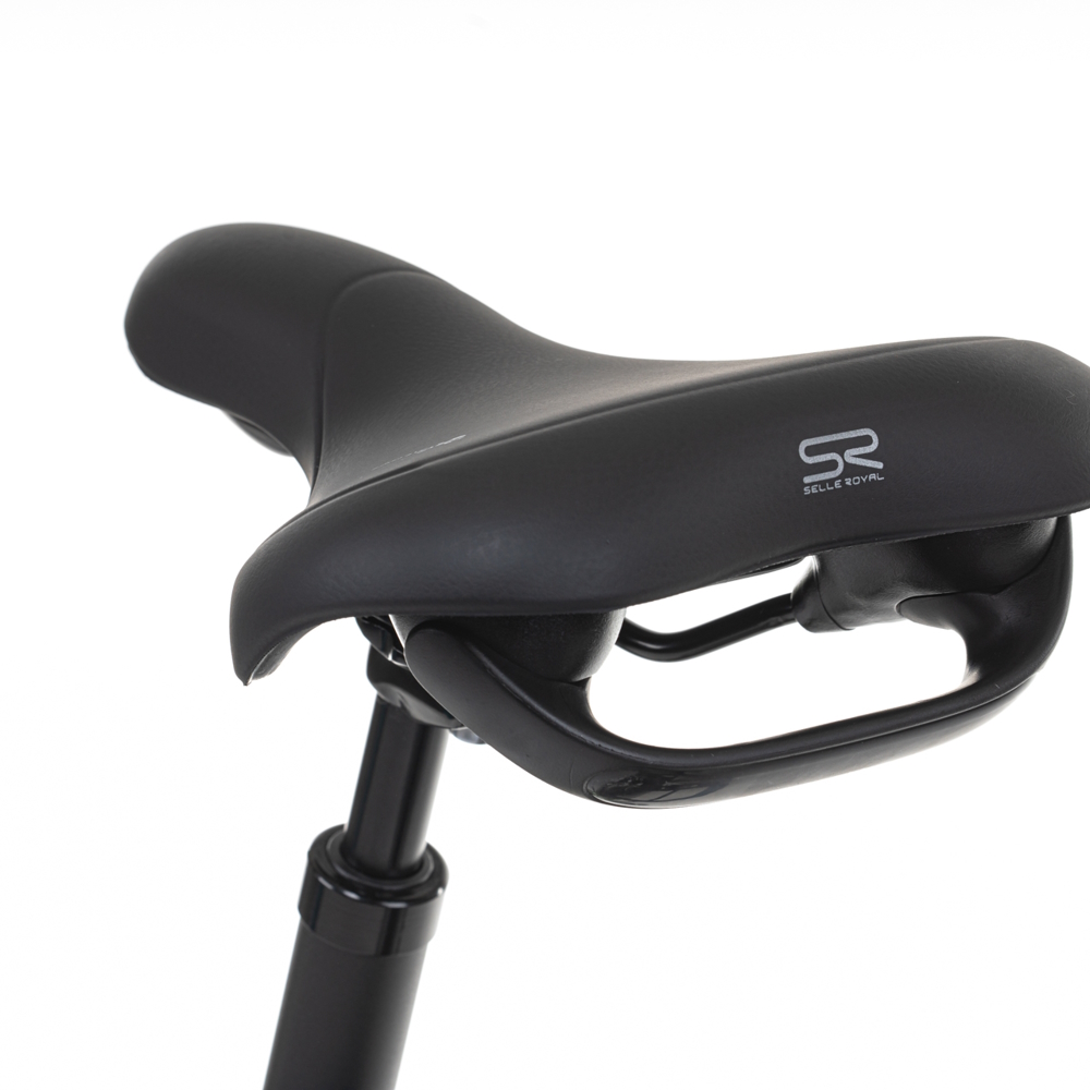 Gelové sedlo s odpruženou sedlovkou poskytuje optimální podporu a tlumení nárazů. Geometrie kola je pečlivě vyvážena, aby podporovala rovný posed a minimalizovala únavu při delších jízdách. Ať už se vydáte na krátkou projížďku nebo delší výlet, zajistí komfortní a příjemnou jízdu.