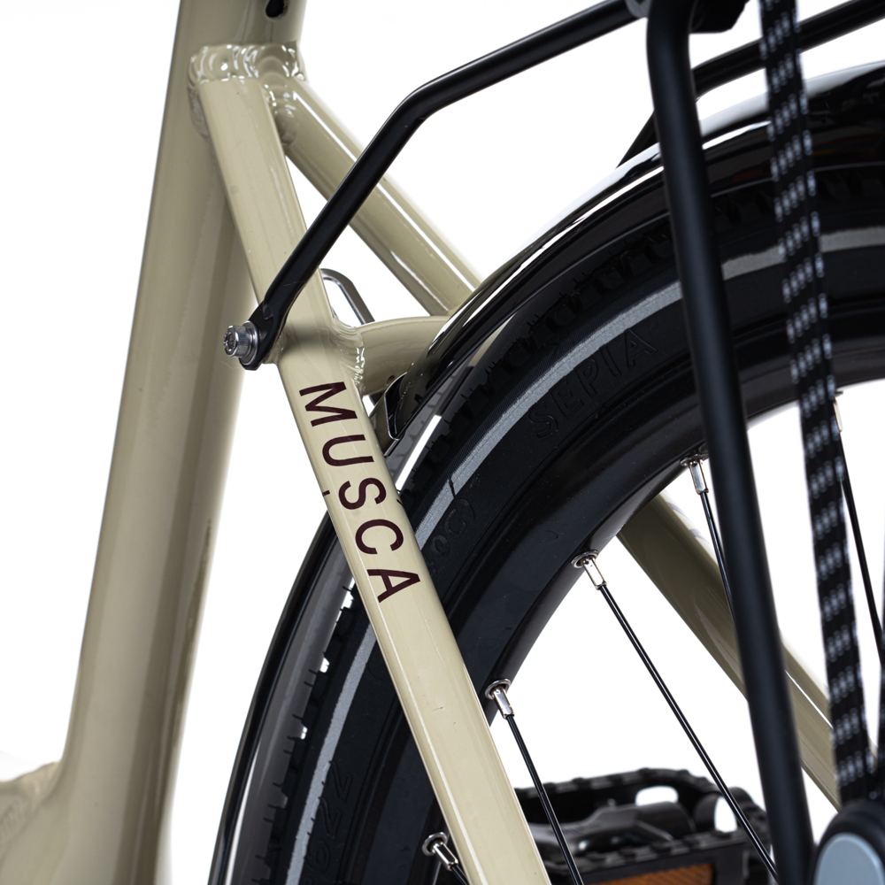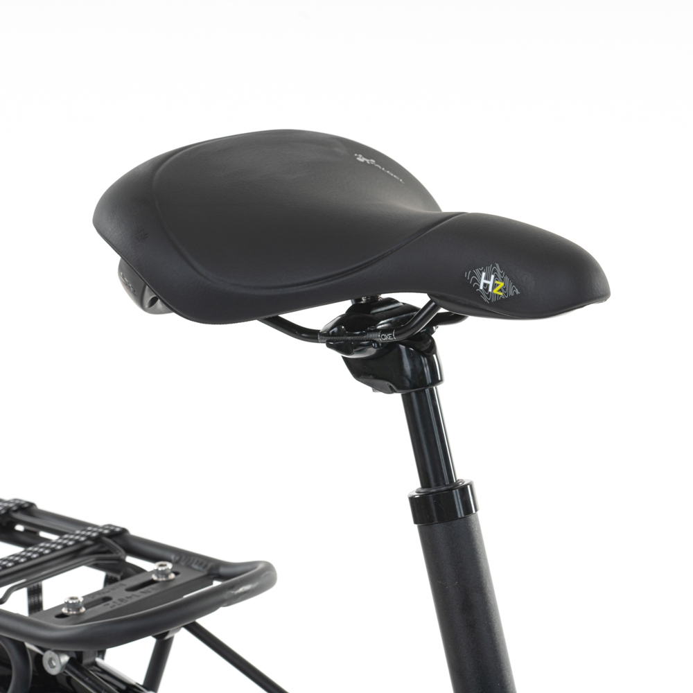Gelové sedlo s odpruženou sedlovkou poskytuje optimální podporu a tlumení nárazů. Geometrie kola je pečlivě vyvážena, aby podporovala rovný posed a minimalizovala únavu při delších jízdách. Ať už se vydáte na krátkou projížďku nebo delší výlet, zajistí komfortní a příjemnou jízdu.