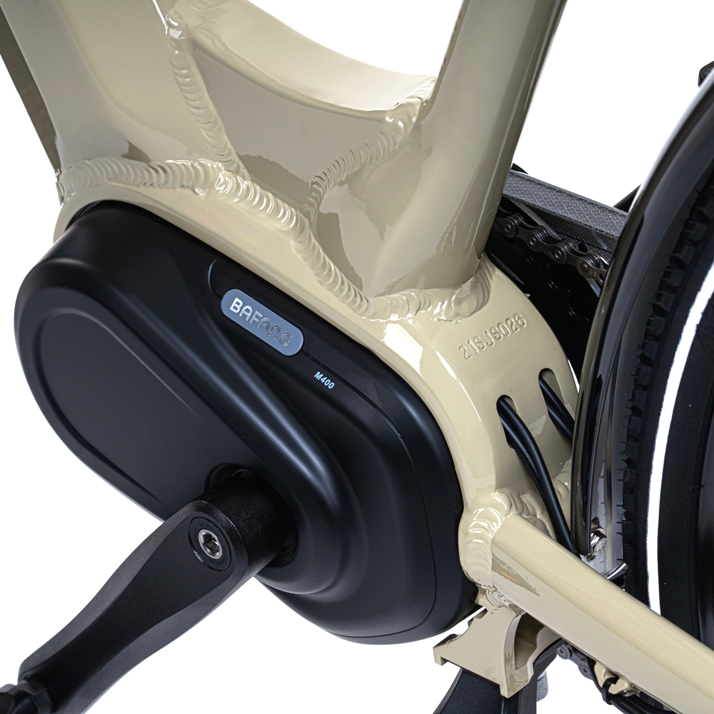 Ať už se vydáte kamkoliv, podpoří vás silný motor Bafang M400 s maximálním točivým momentem až 80 Nm a baterie Levit SP2.1 s kapacitou 438 Wh. Tato kombinace vám dopřeje plný zážitek z jízdy s dojezdem až 100 km.