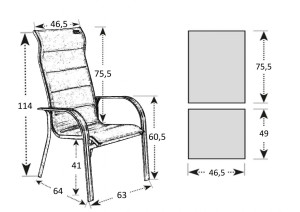 rozměry sedáku: 46,5 x 49 cm (šířka x hloubka)
